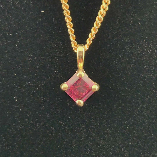 A garnet from a new find in Tanzania in 2024, set in a 14k gold pendant. Rumors say that the vein of this type of garnet is already exhausted.